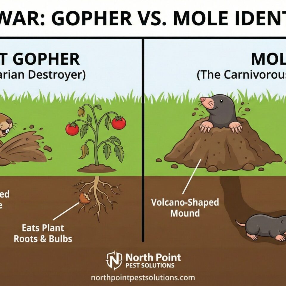 Unlike house mice, they rarely invade homes but can cause significant problems outdoors. Their shallow tunnels and surface runways damage lawns and gardens, leaving behind scattered mounds and weakened root systems.