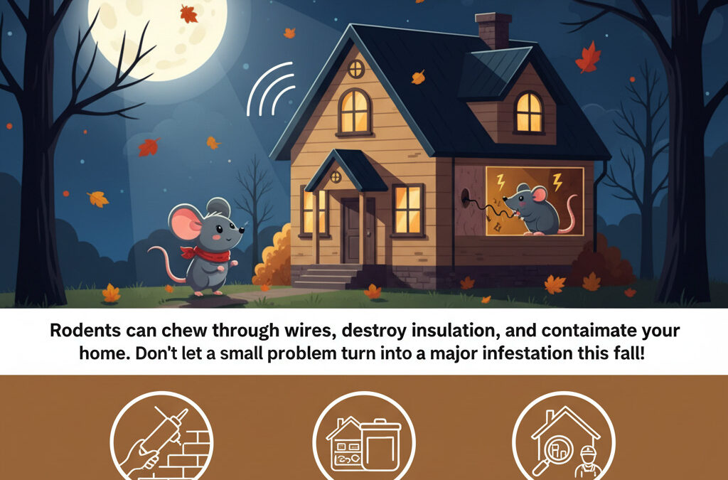Rodents can chew through wires, destroy insulation, and contaminate your home. Don’t let a small problem turn into a major infestation this fall!